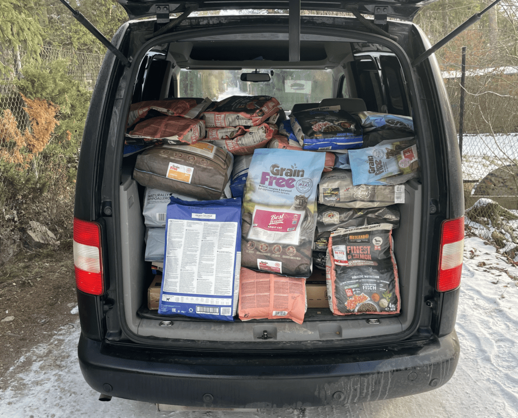 Opuštěným pejskům z azylu Tylda jsme přivezli 150 kg granulí. Stejné množství pak putovalo kočičkám ze spolku Feliti.